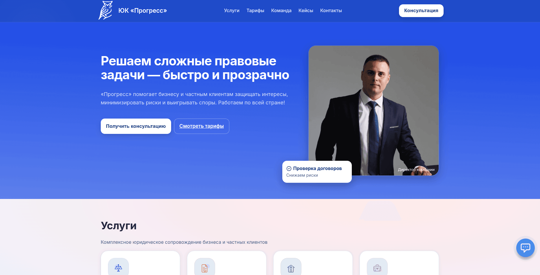 Учли все пожелание клиента - добавлены все нужные услуги, описаны процессы работы, проведена базовая seo-подготовка. Заявки отправляются на email и в телеграмм.